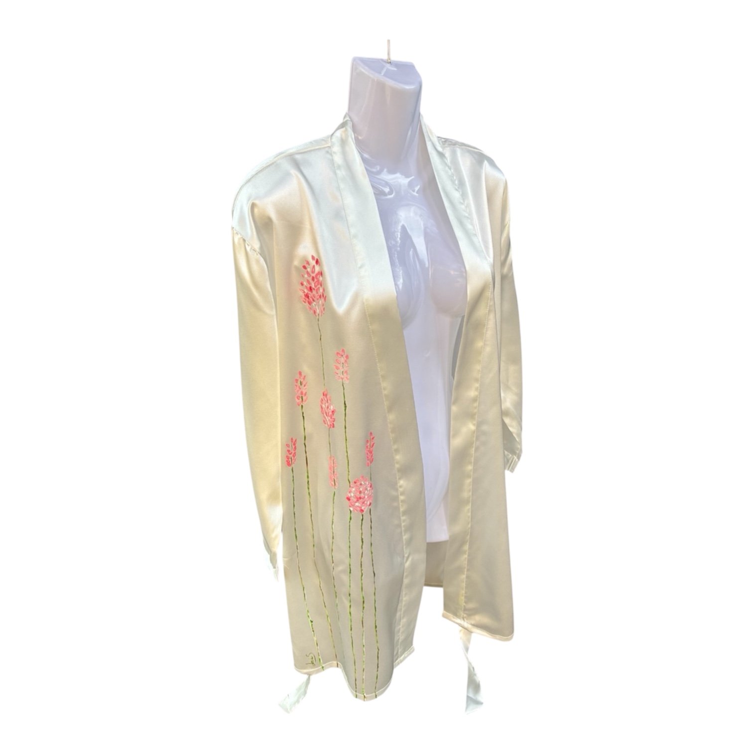Bata blanca de satén pintada a mano