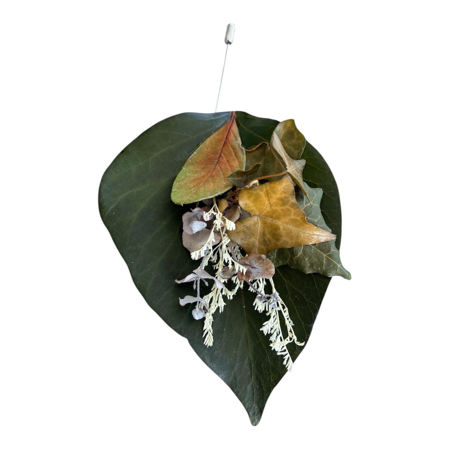 Broche con flor preservada blanca, realizado artesanalmente, al ser natural siempre te acompaña la energĂa de la naturaleza. Se puede personalizar el color por encargo.