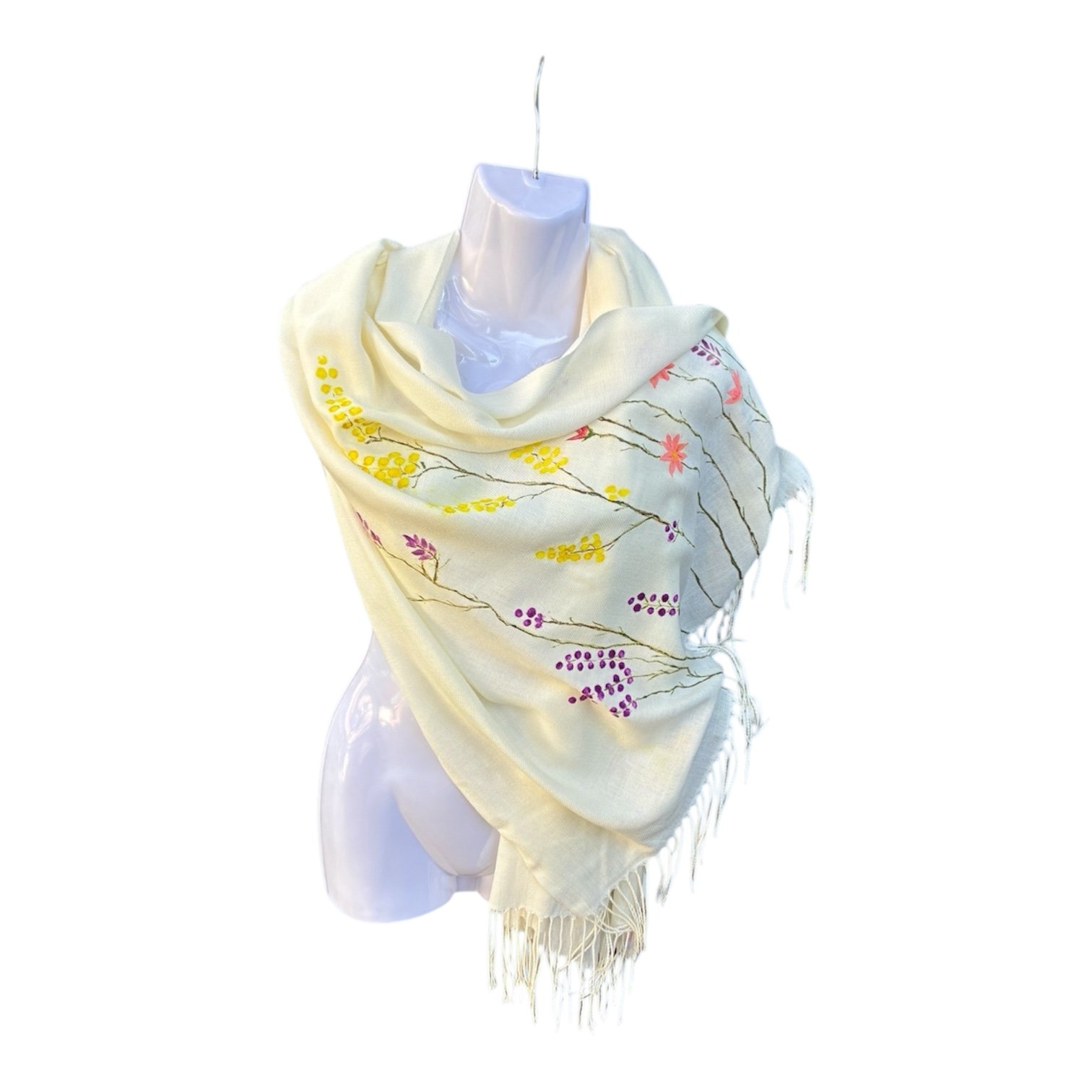 Bufanda chal con ramaje pintada a mano