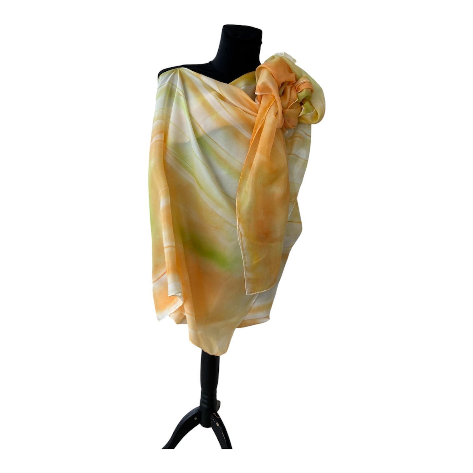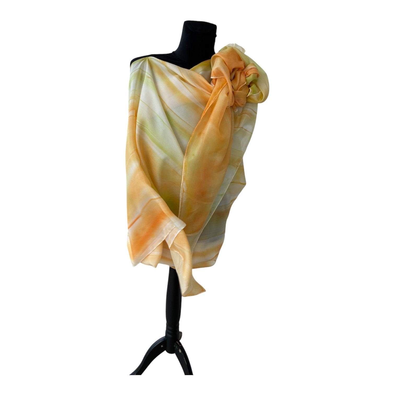 Chal con broche de seda pintado a mano