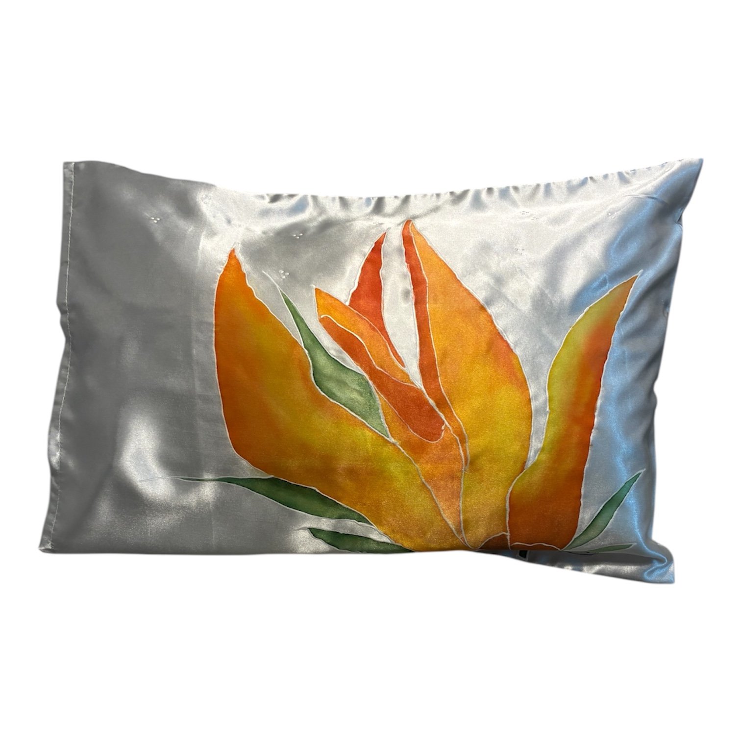 Cojín de satén con ramaje pintado a mano