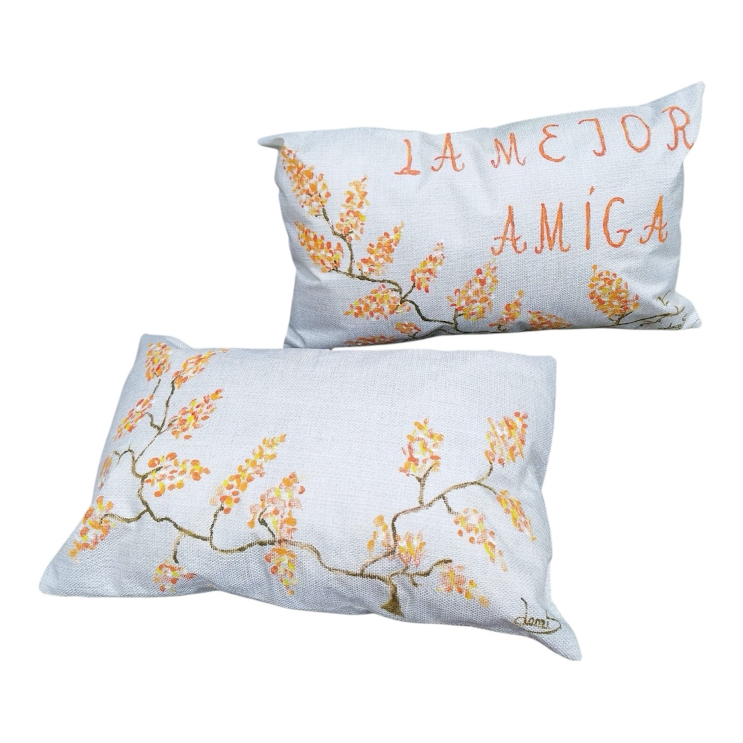 Conjunto de dos cojines con dedicatoria pintados a mano