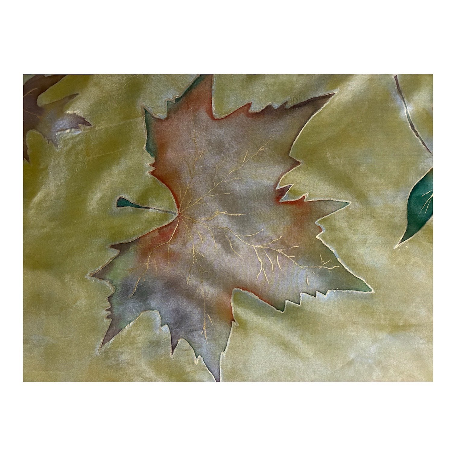 SĂ© el primero en valorar “Fular de seda natural amarillo con hojas pintado a mano”