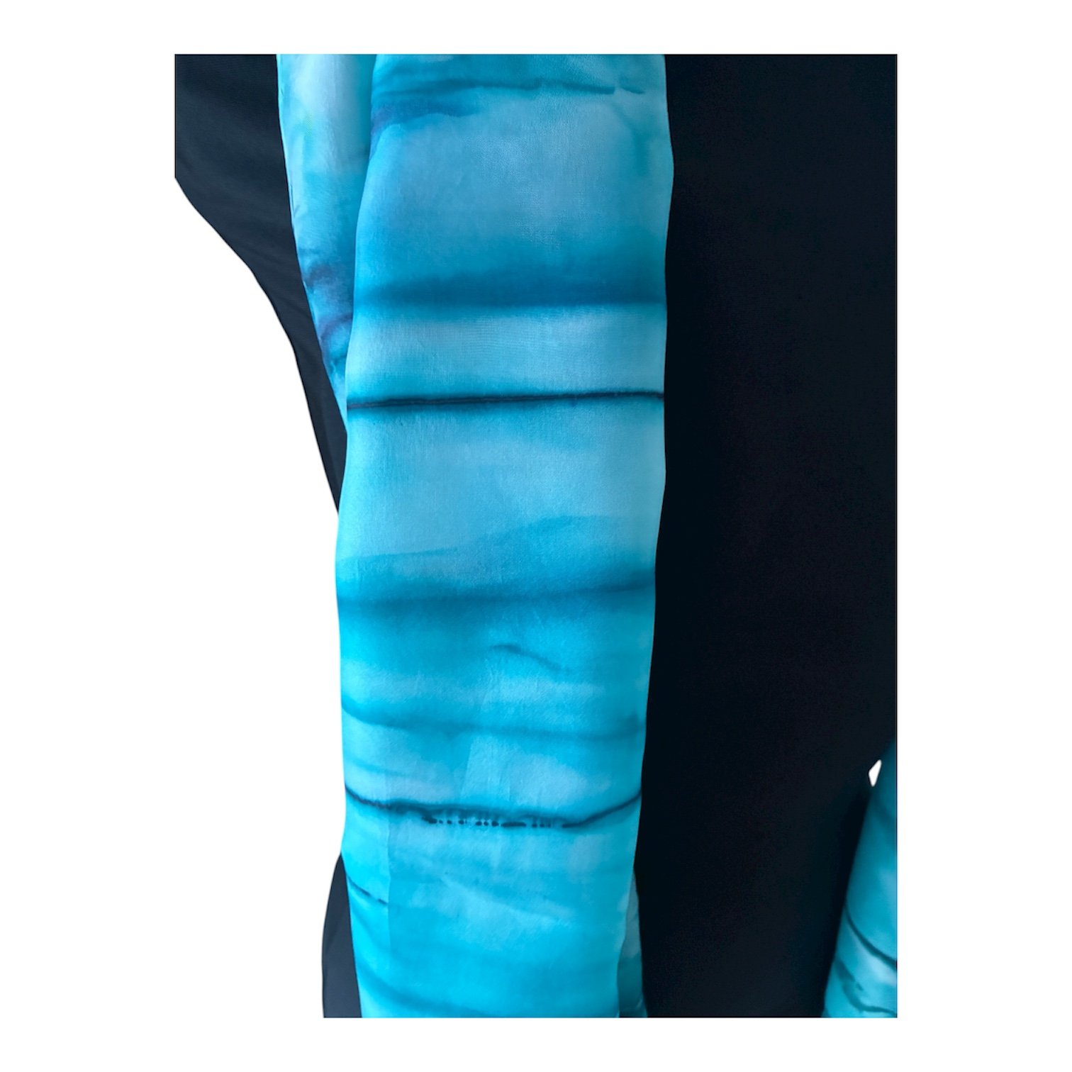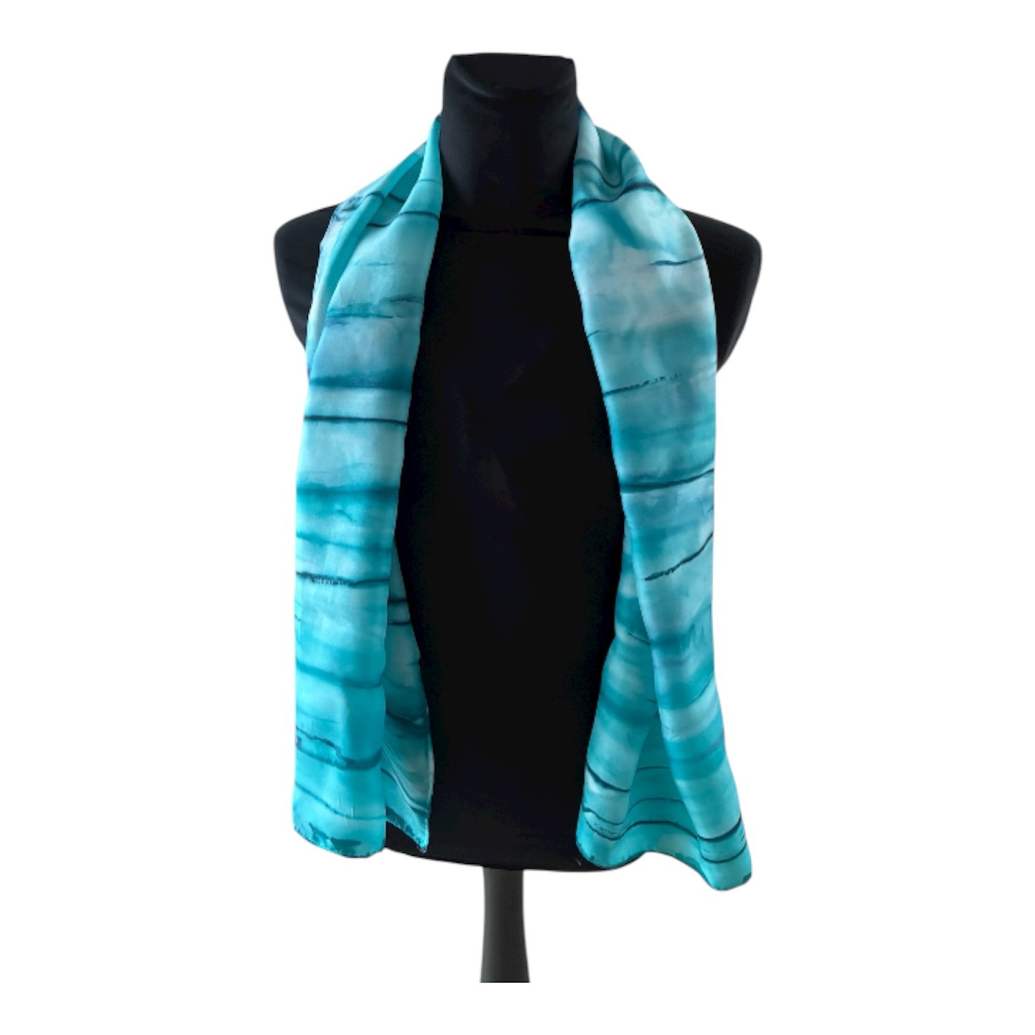 Fular de seda natural azul pintado a mano