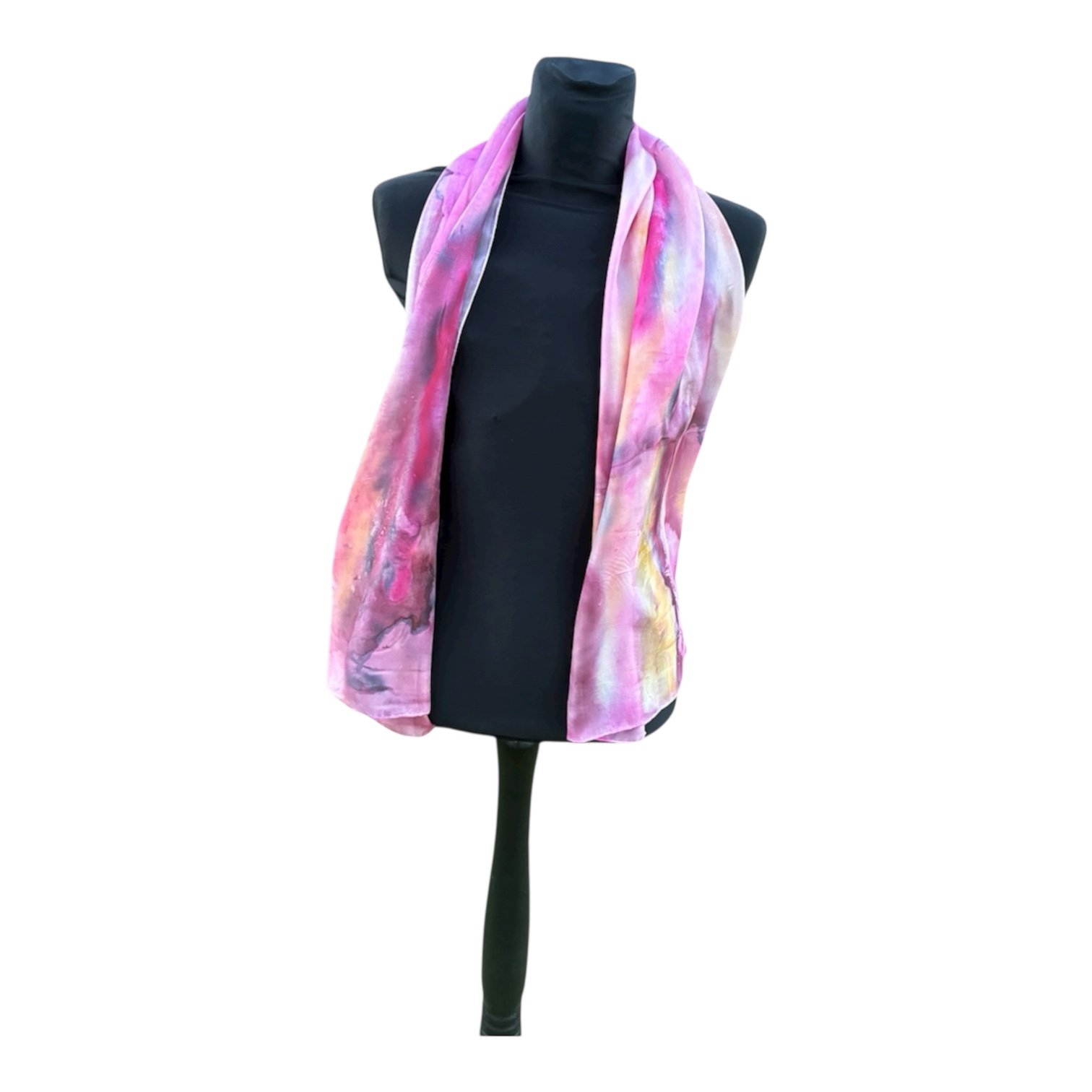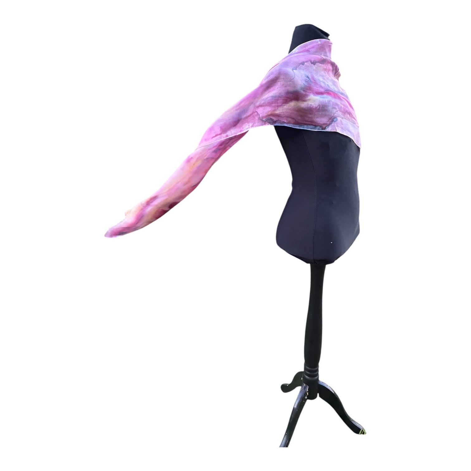 Fular en tonos granates de seda natural, pintado a mano menzlando el arte y la artesania, aplicando una tĂ©cnia milenaria, la seda es termorreguladora, fresca en verano y cĂ¡lida en invierno, suave, tiene brillo natural y alta resistencia. Se puede diseñar en cualquier color por encargo Medidas 140 x 45 cm. Composicion seda habotai 100%