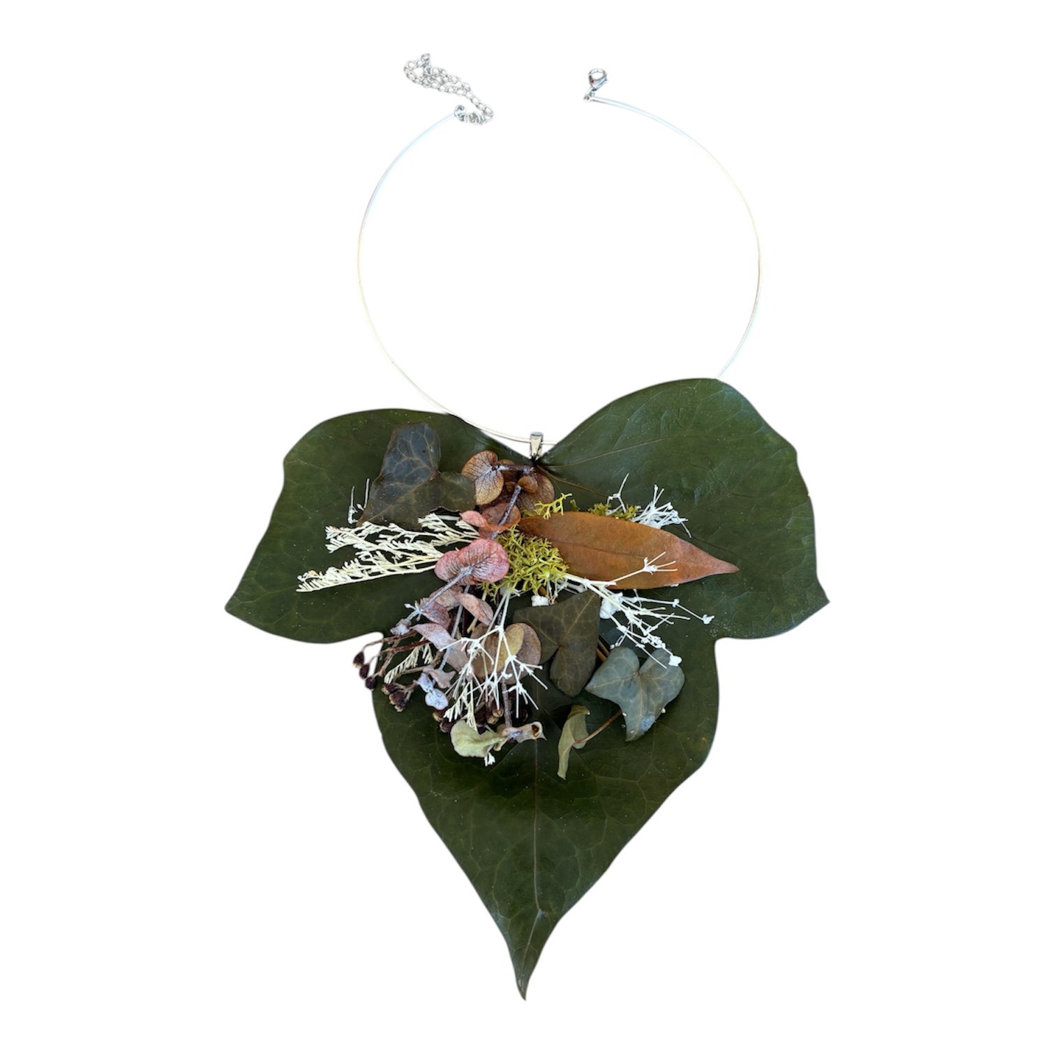 Gargantilla plateada con flor preservada blanca, lleva la energĂ­a de la naturaleza a tu cuello. Se puede personalizar el color por encargo.