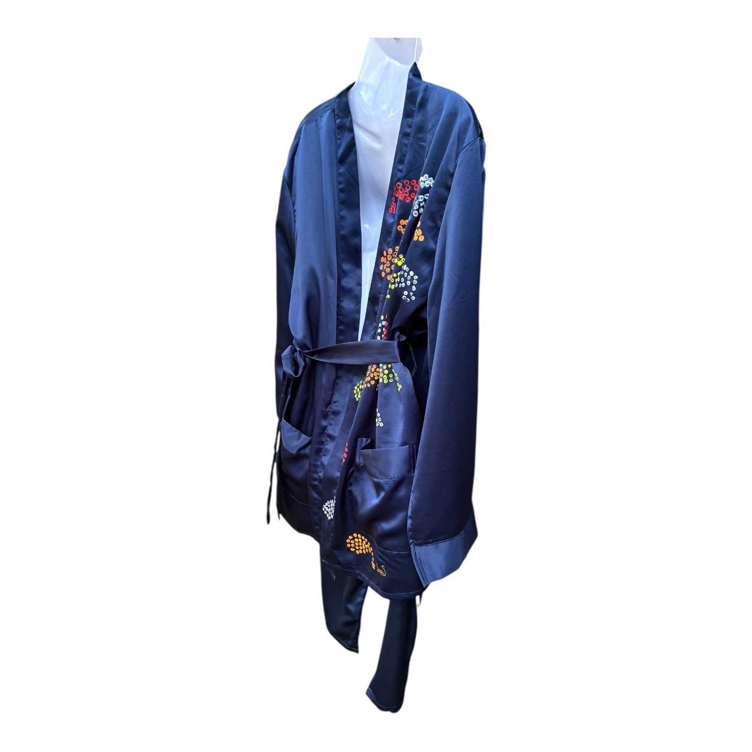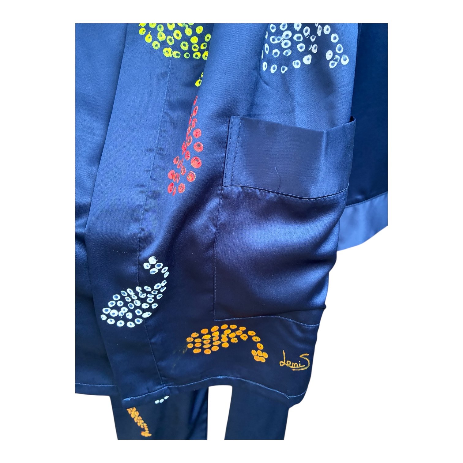 Pijama saten azul marino pintado a mano