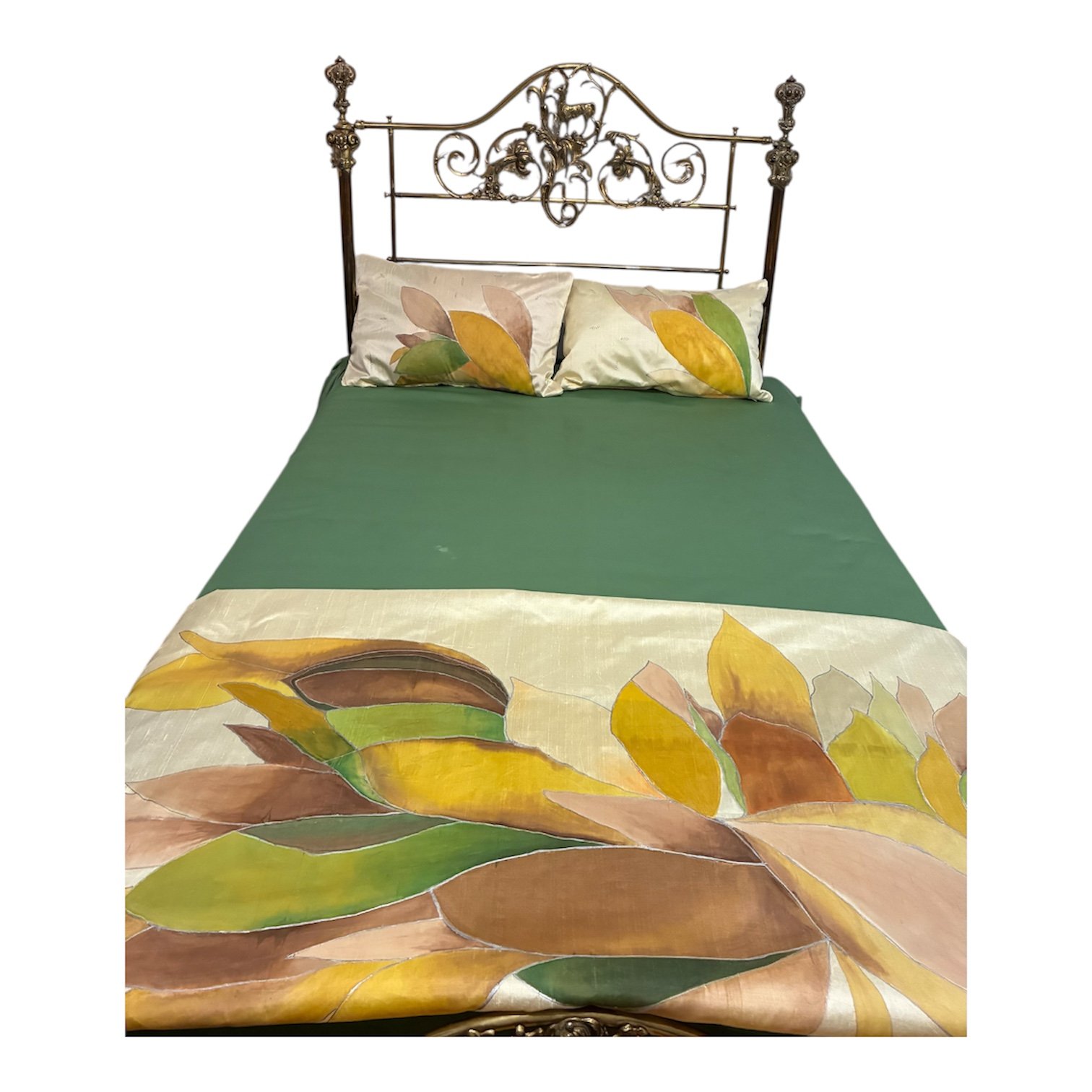 Conjunto funda nĂ³rdica y dos almohadas de satĂ©n pintada a mano