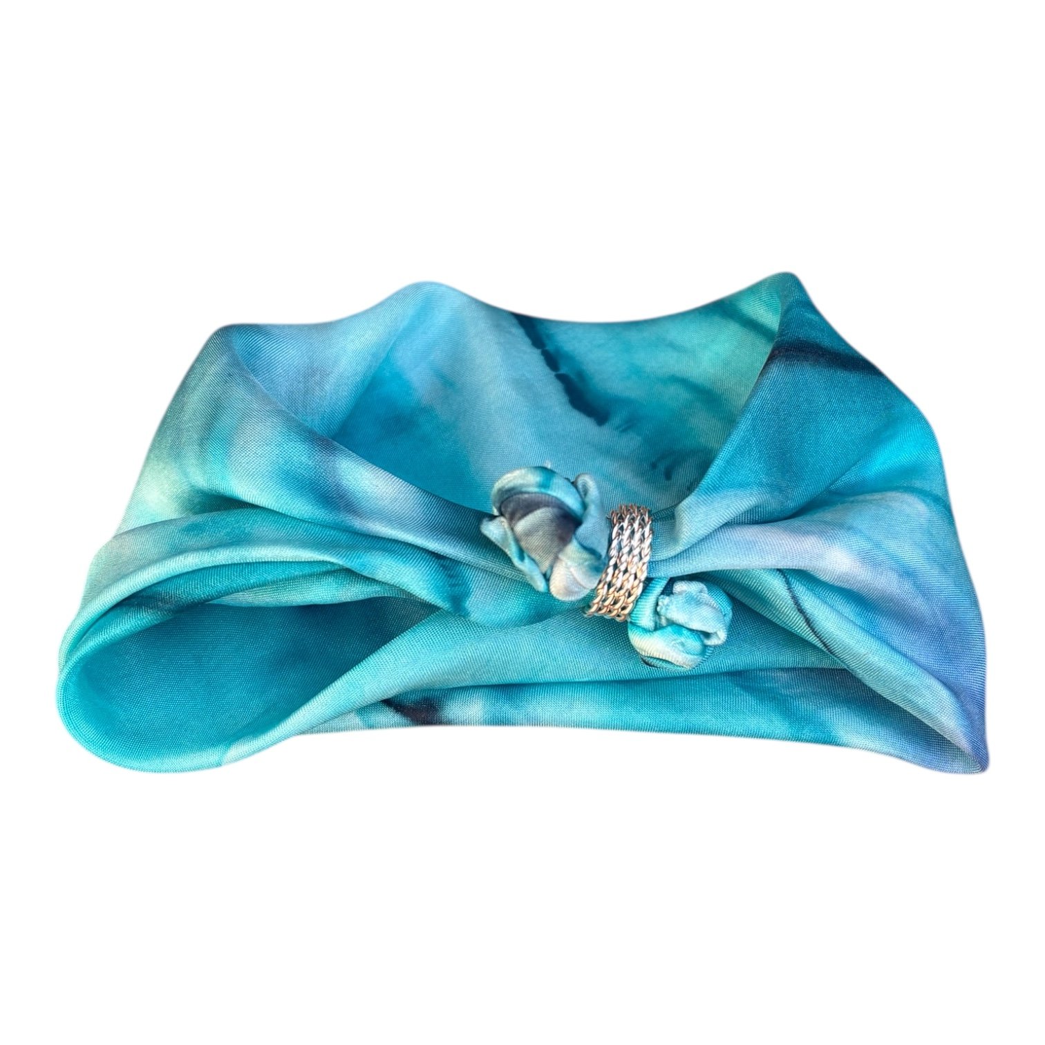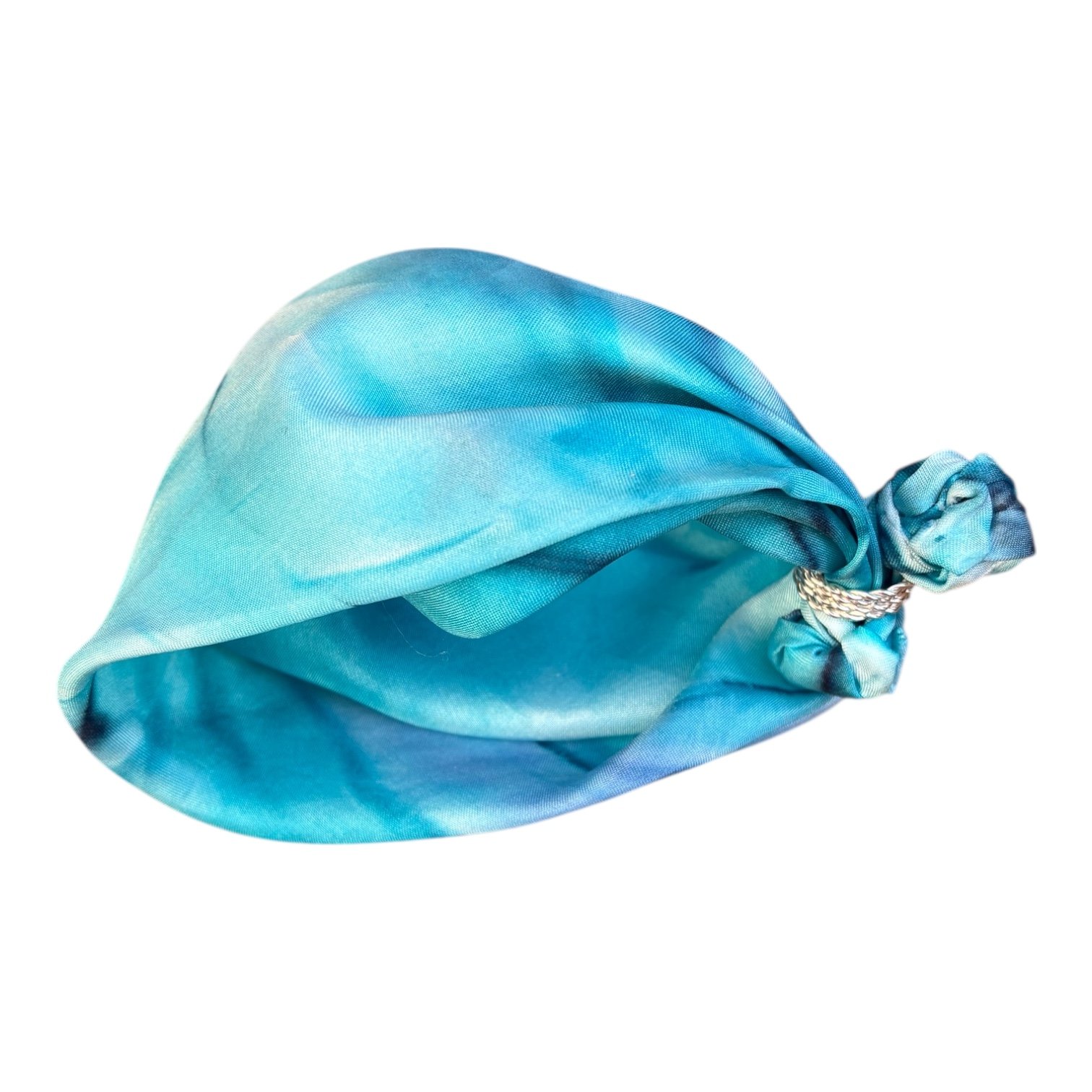 Pulsera de seda natural pintada a mano en tonos azul claro y oscuro.
