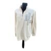 Sudadera color crudo con capucha ajustable, pintada a mano, manga larga, corte amplio, muy suave. Medidas: Pecho 57 cm. Largo delantero 55 cm. Largo manga 54 cm. ComposiciĂ³n: Viscosa 49%, PoliĂ©ster 43%, Elastano 8%