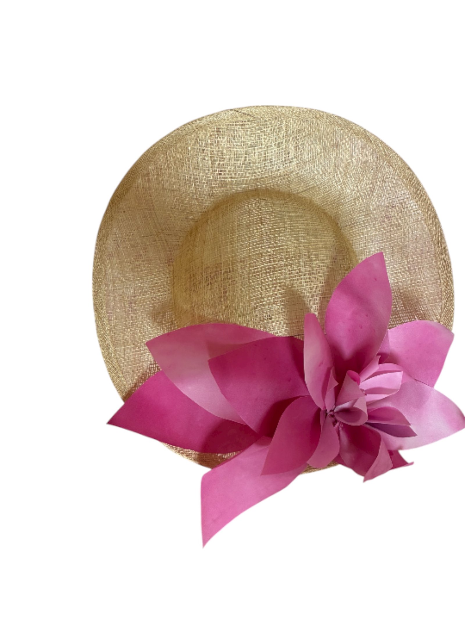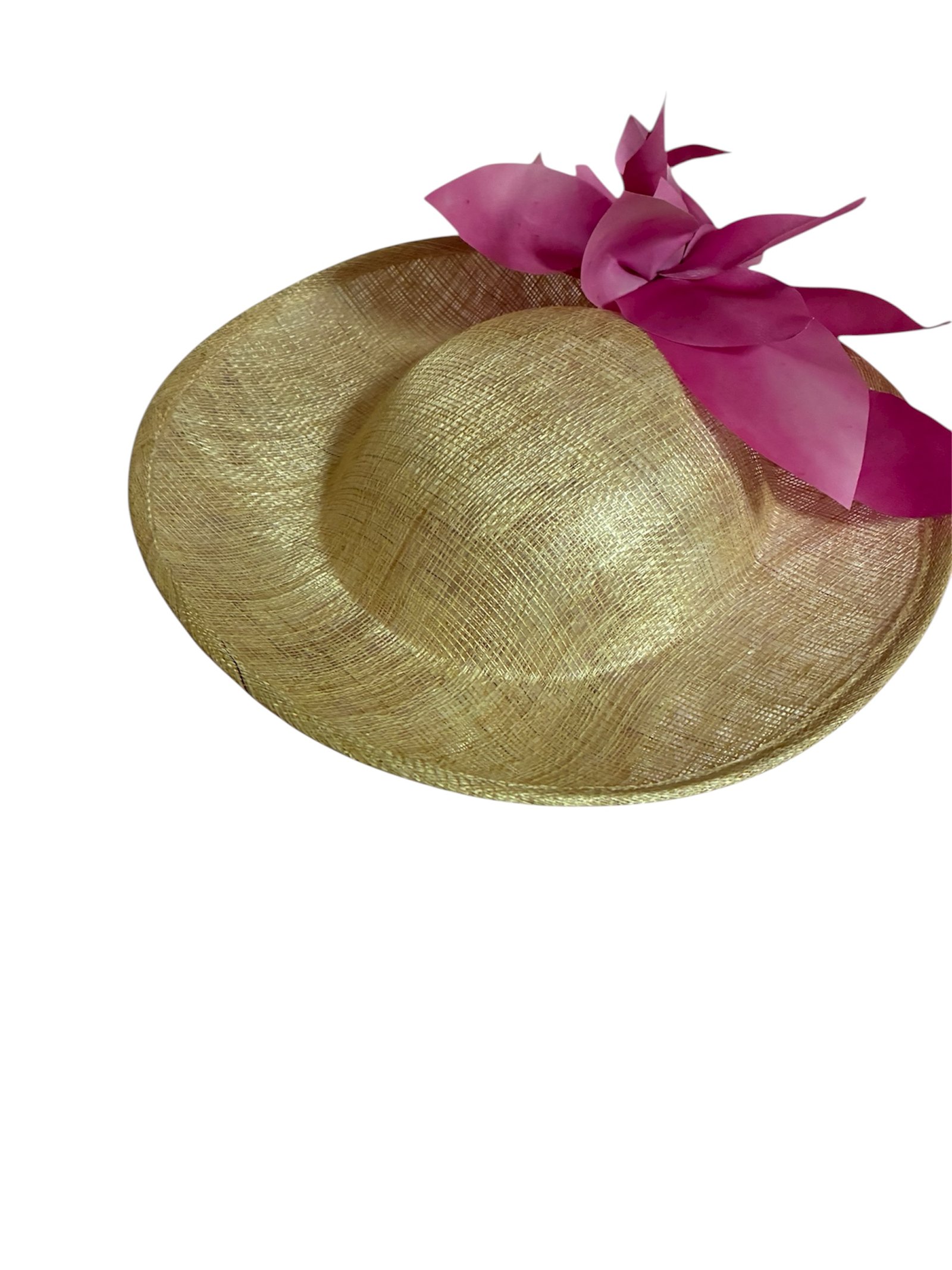 Tocado de sinamay en color natural, decorado con raso color buganvilla pintado a mano, realizado artesanalmente en nuestro taller. Si te gusta el modelo pero el color no te encaja con tu look de invitada, podemos personalizar por encargo el color que elijas para el adorno de raso, asĂ­ como la inclinaciĂ³n de la diadema. Medida: diĂ¡metro 30 cm. para cualquier consulta ponerse en contacto en el whatsapp 683365109 o por correo electrĂ³nico info@lomisanchez.com. Dada la naturaleza de este artĂ­culo no se admiten cambios ni devoluciones.