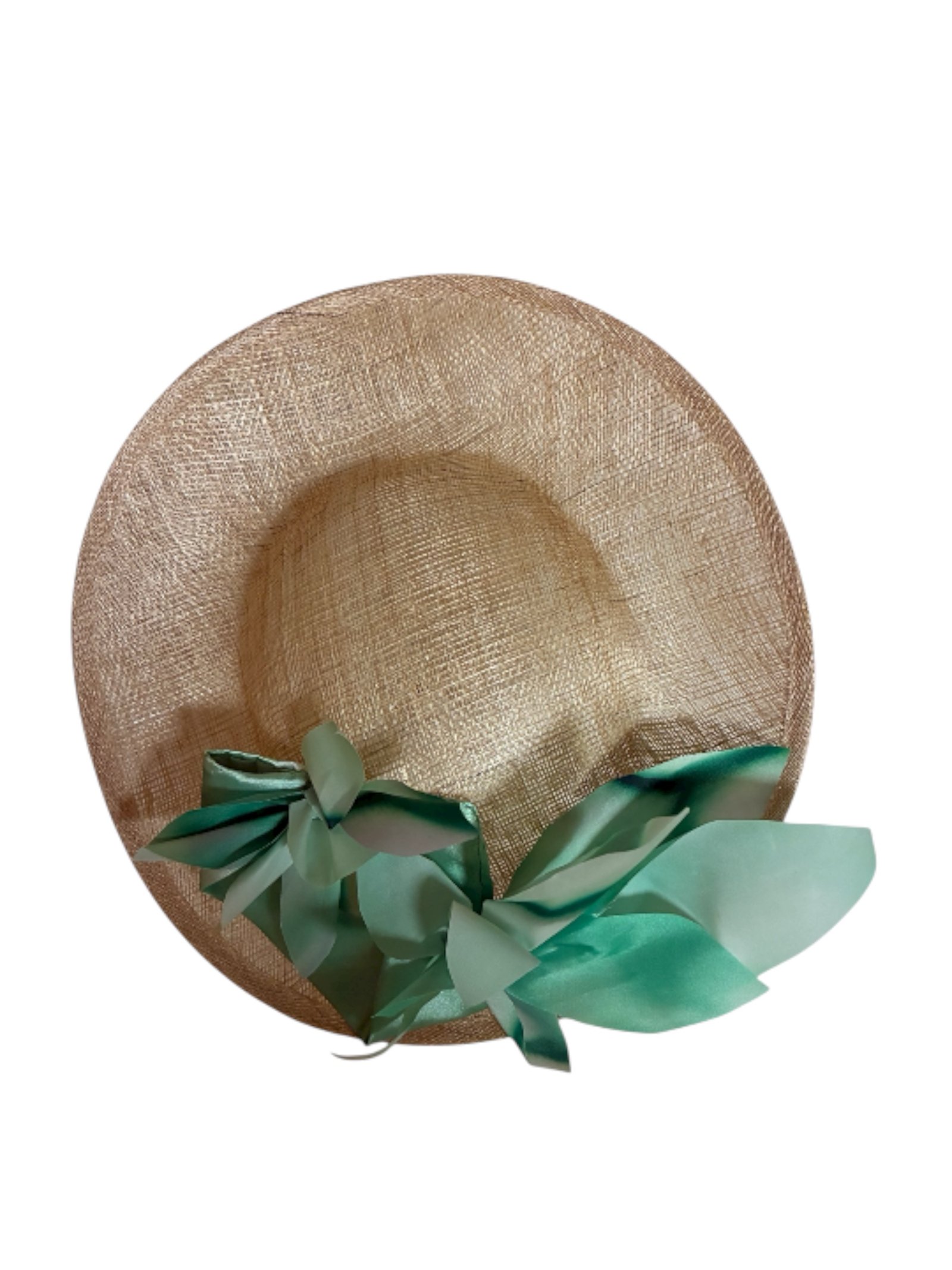 Tocado de sinamay en color natural, decorado con raso verde pintado a mano, realizado artesanalmente en nuestro taller. Tiene un tamaño ideal y muchas opciones para decorarlo. Si te gusta el modelo pero el color no te encaja con tu look de invitada, podemos personalizar por encargo el color del adorno de raso que elijas, o el sinamay (natural, negro, berenjena, rosa nudĂ©), asĂ como la inclinaciĂ³n de la diadema de sujeciĂ³n. Medida; diĂ¡metro 30 cm. Para cualquier consulta ponerse en contacto en el whatsapp 683365109 o por correo electrĂ³nico info@lomisanchez.com. Dada la naturaleza ,este artĂculo no se admiten cambios ni devoluciones.